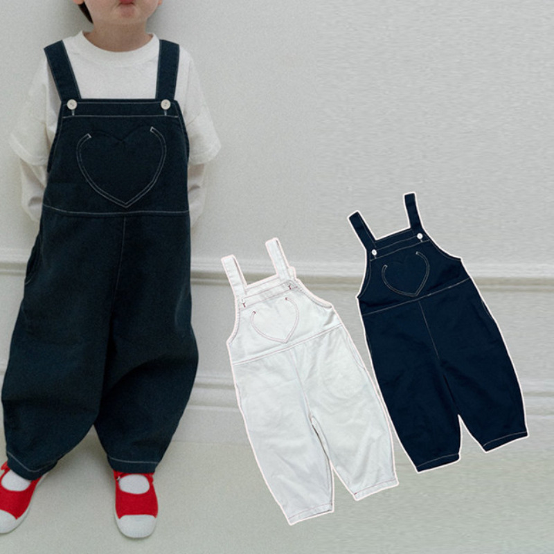 儿童爱心口袋牛仔背带裤26韩系春夏季男女童韩范超洋气百搭背带裤