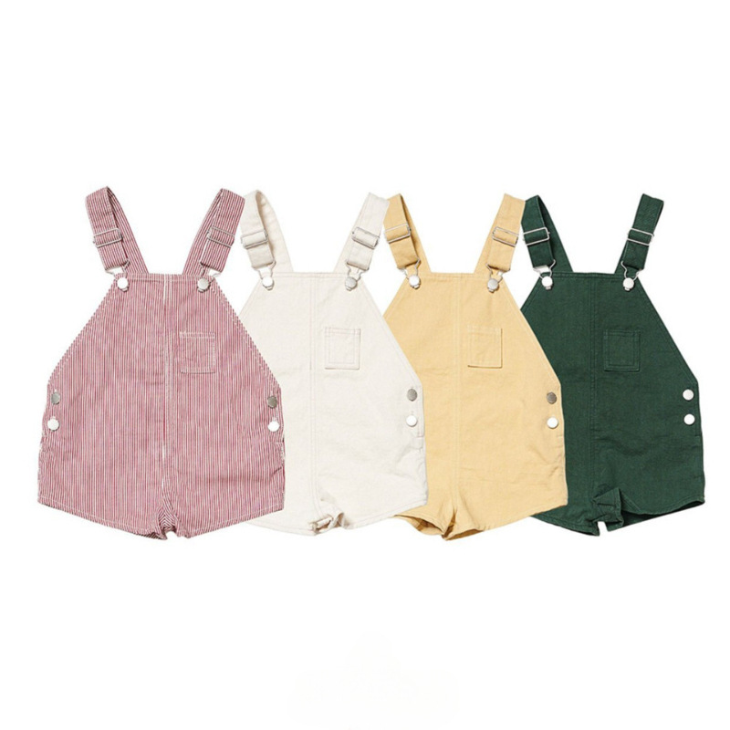 儿童纯色潮范条纹背带裤26韩版夏季男女童休闲帅气百搭短裤连身裤