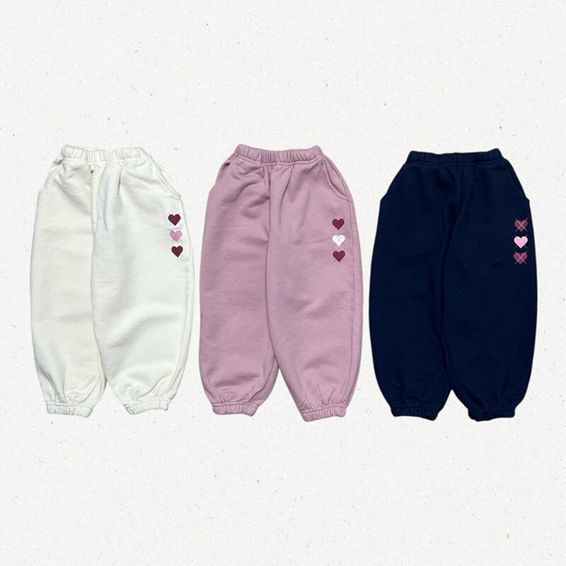 儿童爱心潮范长裤韩版童装2026春季男女童帅气舒适爱心运动休闲裤