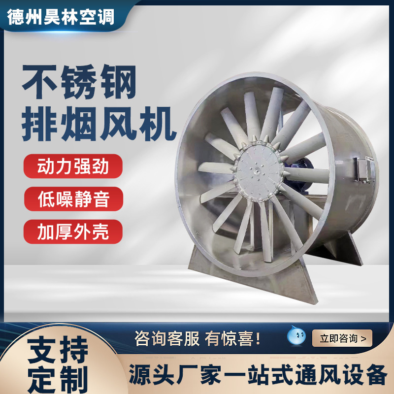 不锈钢排烟风机消防耐高温管道通风轴流风机低噪耐腐消防排烟风机