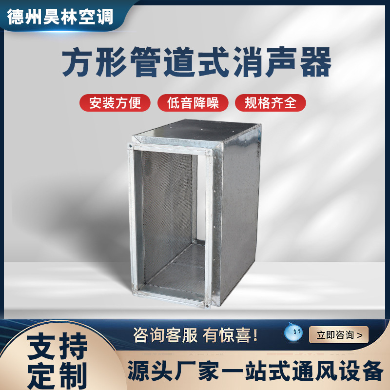 不锈钢静压箱方形管道式消声器矩形静压箱镀锌板降噪隔音消声风管