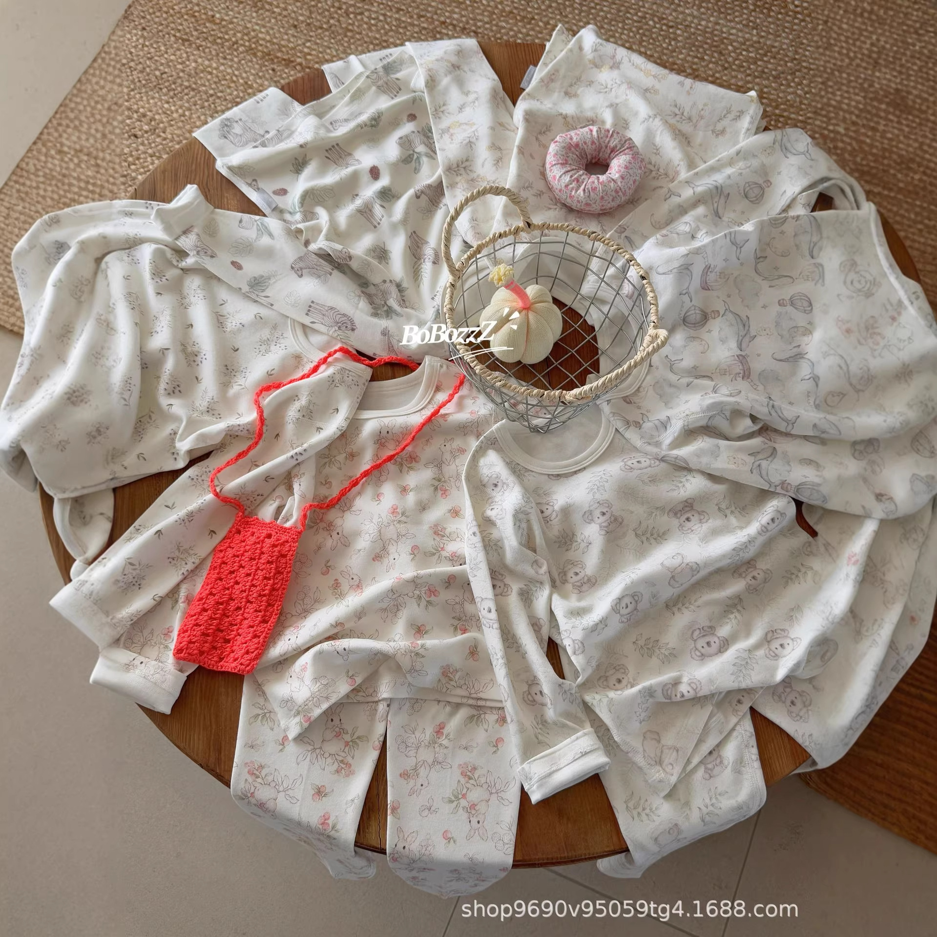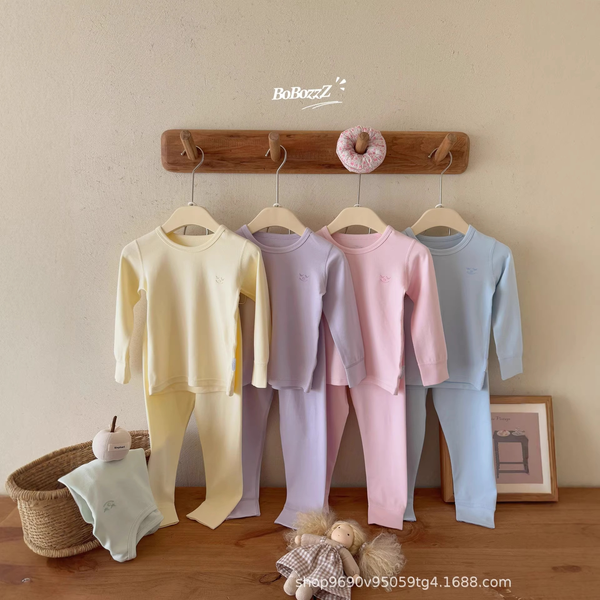 宝眠秋冬小奶芙北欧ins风家居服男童女童童装秋衣秋裤柔软睡衣