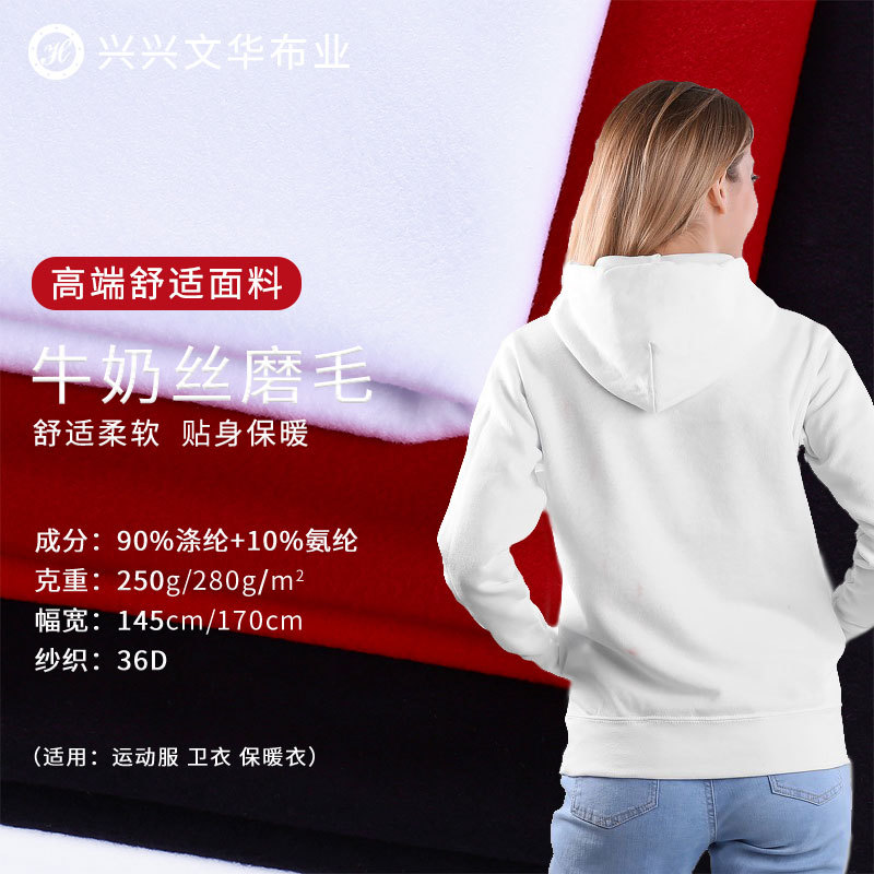 牛奶丝磨毛面料 针织弹力布料运动裤面料 涤氨莱卡卫衣服装面料