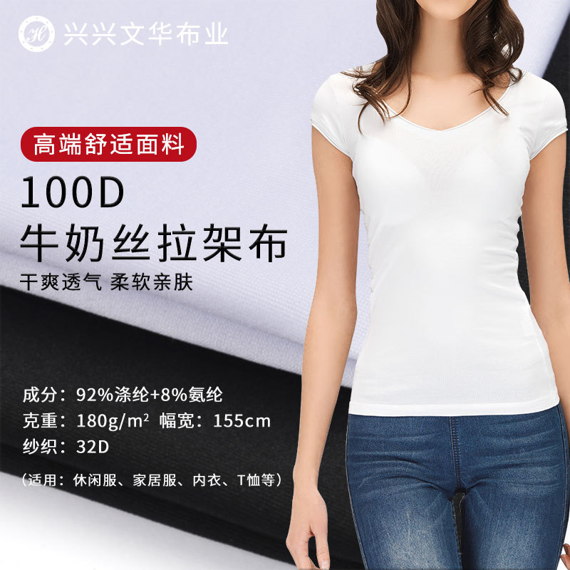 100D牛奶丝拉架布 速干弹性莱卡瑜伽裤布料涤纶针织t恤防晒衣面料