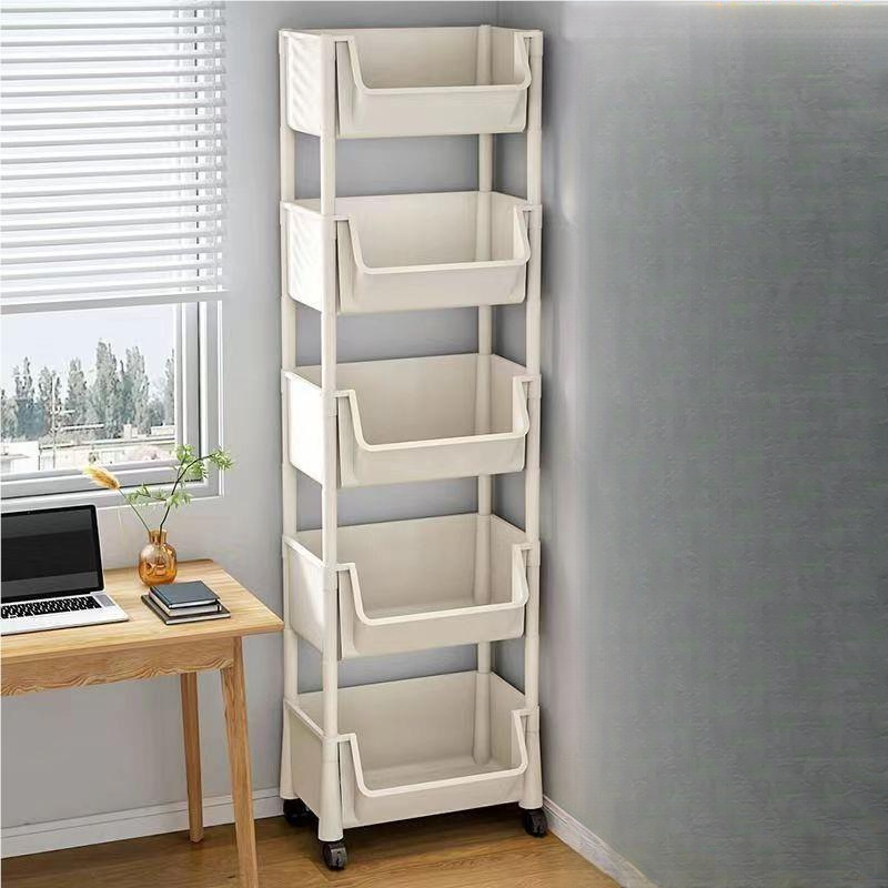 儿童玩具收纳置物架落地多层零食储存架家用可移动简易书架小推车