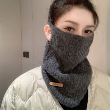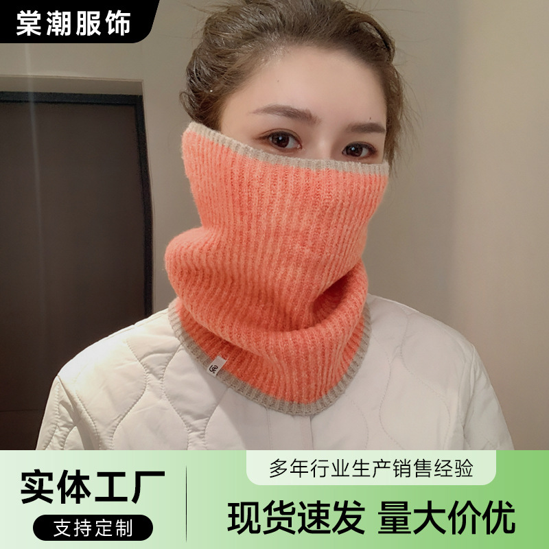 羊毛混纺拼色小直筒款复合面罩围脖套装保暖多功能拼色围脖面罩