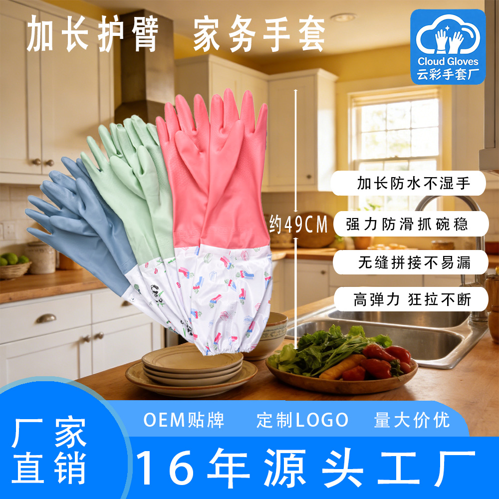• 专利厨房清洁洗碗家用洗衣服pvc加长加厚宽口防水家务手套