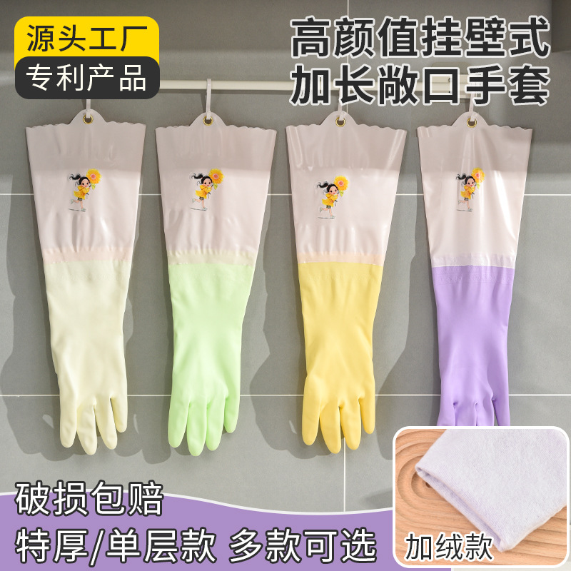 • 厨房清洁洗碗手套家用挂壁洗衣手套pvc加长加厚宽口防水家务手套