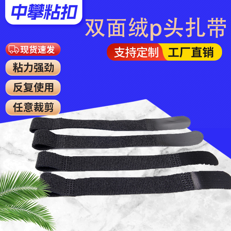 双面绒p头扎带P型魔术贴扎带理线带数据线魔术贴绑带加厚尼龙扎带