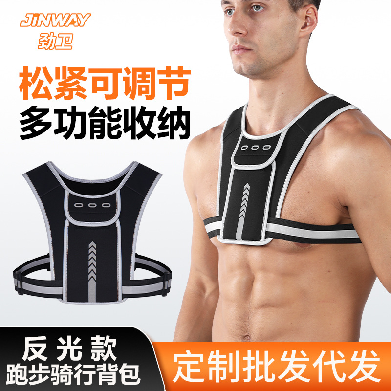跨境户外运动骑行背包夜跑反光警示背心可收纳手机身份证水壶背包