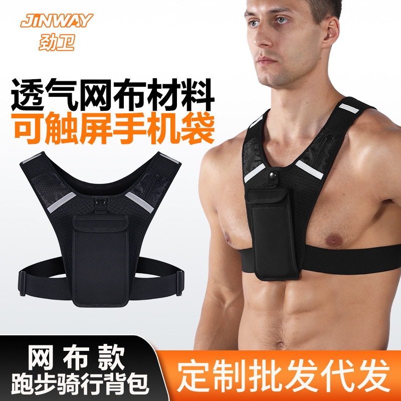 跨境新款跑步背心包可调节腰带反光骑行包网布透气马拉松跑步背包