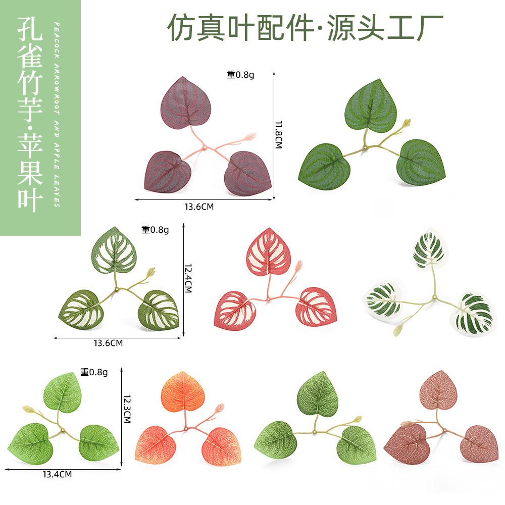 仿真叶子彩色绿植配件手工diy孔雀竹芋插画室内装饰家具道具批发