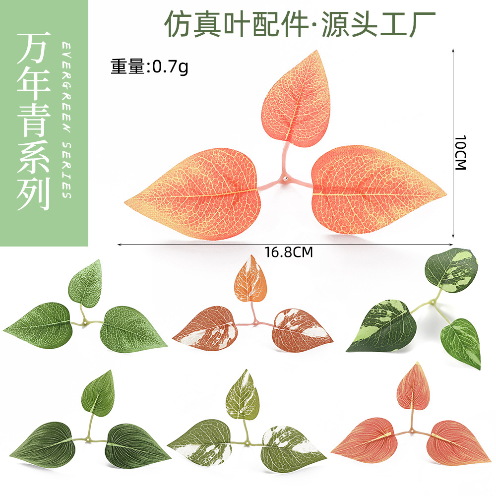 仿真绿植叶子三叉彩色地瓜叶手工diy办公装饰人造化植物配件批发