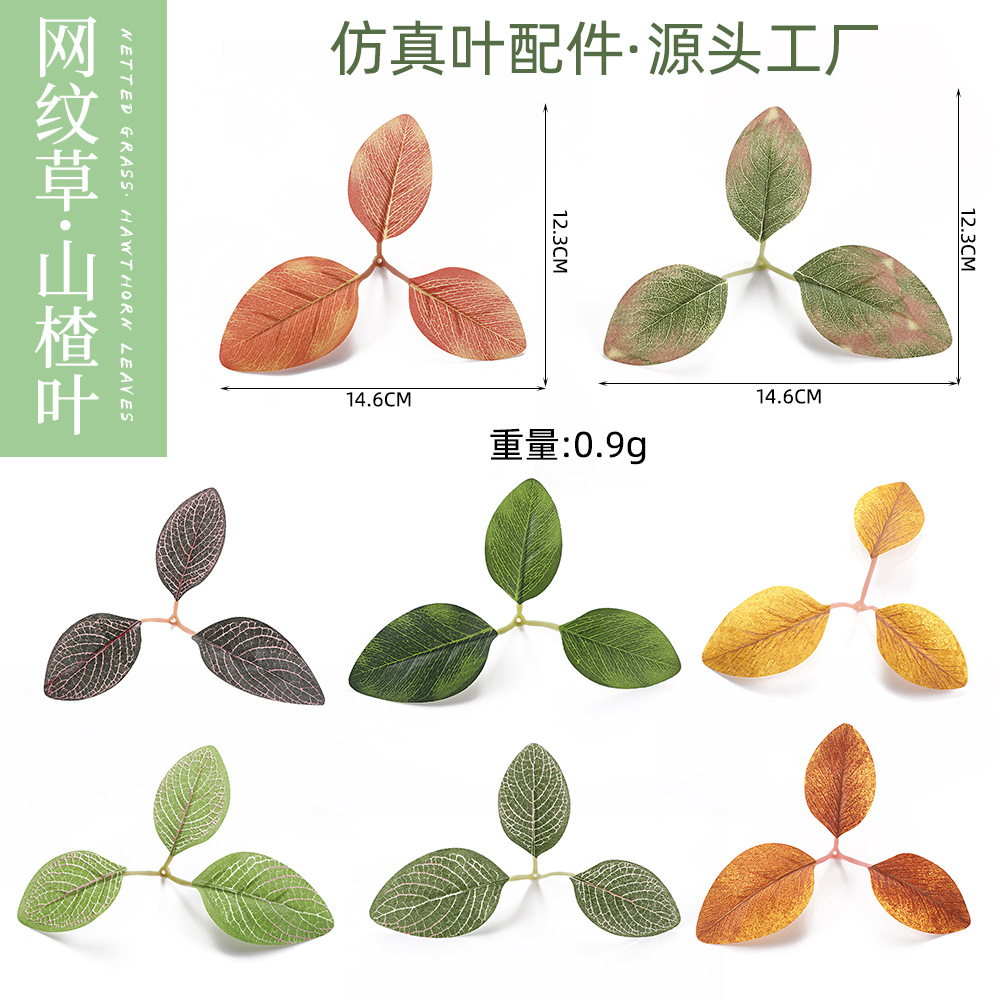 三叉网纹仿真绿植草绢布diy山楂叶家居办公装饰植物藤条花环配件