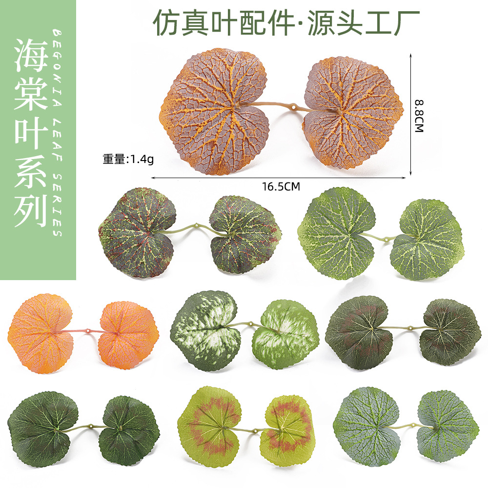 仿真绿植彩色海棠叶手工植物植绒家具装饰摄影拍照道具配件批发