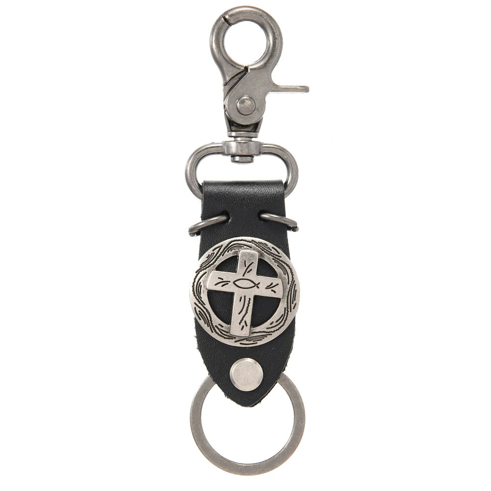 创意个性朋克风合金十字架装饰牛皮男士汽车钥匙扣欧美潮流配饰