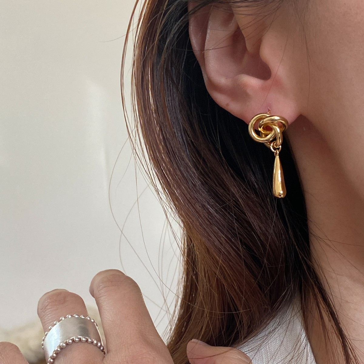 环环相扣三环圈圈花朵耳钉金银不规则水滴吊坠个性简约轻奢风耳饰