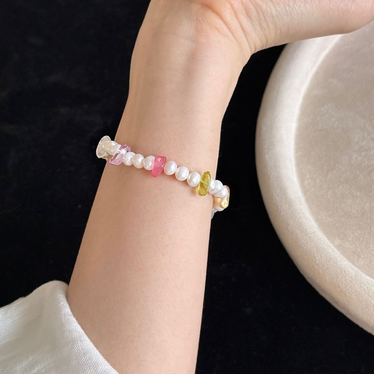 春季甜美设计感五彩糖果色碎石天然珍珠拼接手串简约度假风清新女