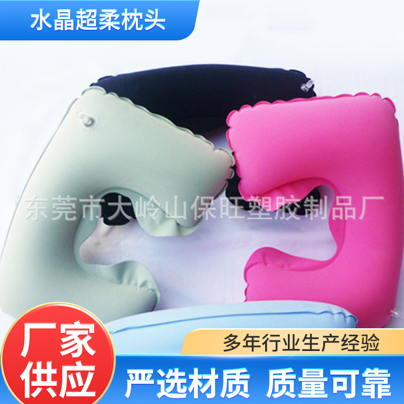 充气U型枕户外旅行护颈睡觉按压便捷植绒枕pvc水晶超柔枕头厂便携