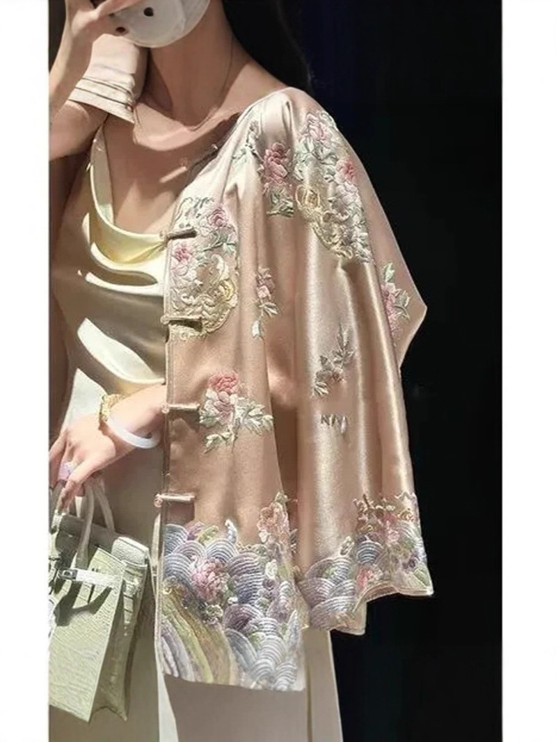 现货新中式复古禅意重工刺绣浅粉色唐装上衣女款盘扣国风外套秋冬