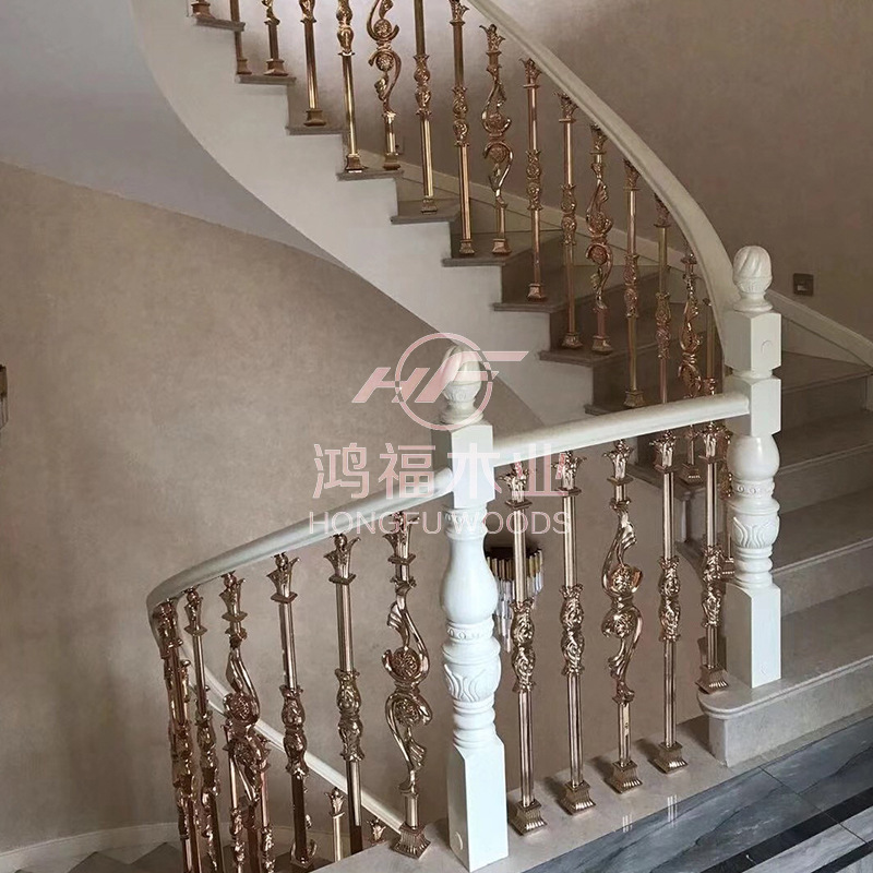 川内家用式铜艺楼梯扶手轻奢室内楼梯批发扭弯扶手轻奢风别墅楼梯