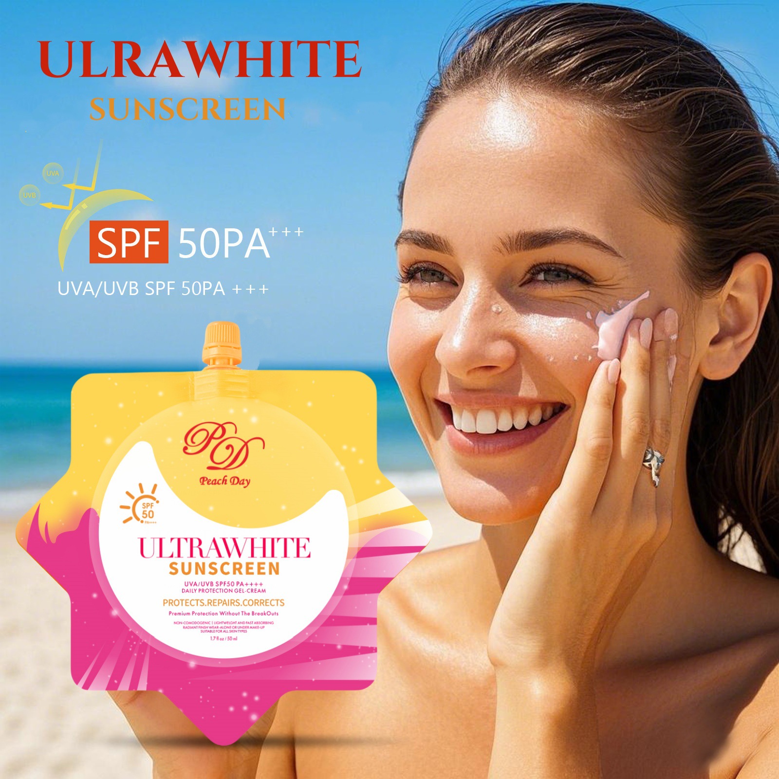 跨境Sun Cream爆款亮白防嗮身体乳霜50+++水润不油腻防紫外身体乳
