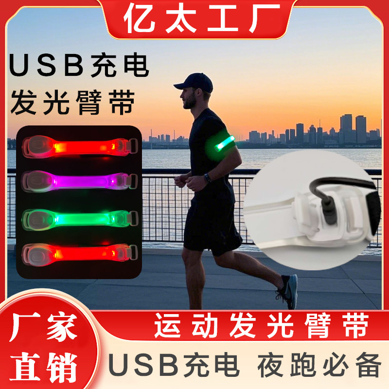 usb充电发光臂带LED发光绑带户外运动夜跑魔术贴发光跑步臂带厂家