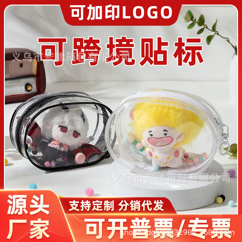 10cm遛娃包棉花娃娃收纳包加宽椭圆娃包PVC透明包防水防尘保护 套