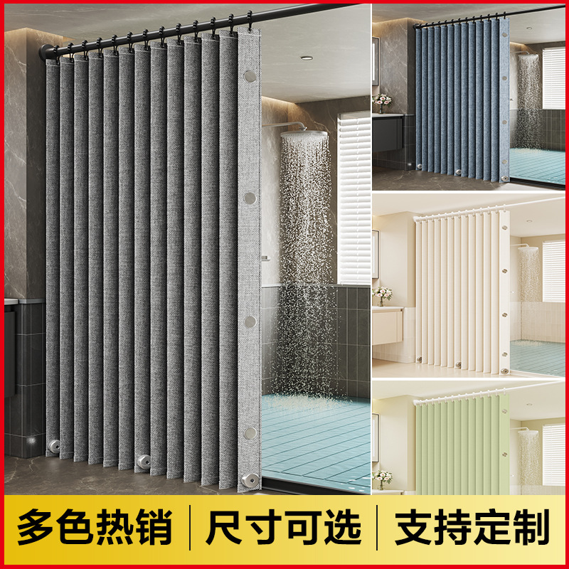 浴室隔水挂帘磁吸防水防霉遮挡窗帘淋浴干湿分离夏季仿亚麻浴帘子
