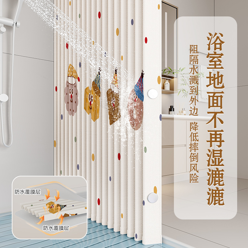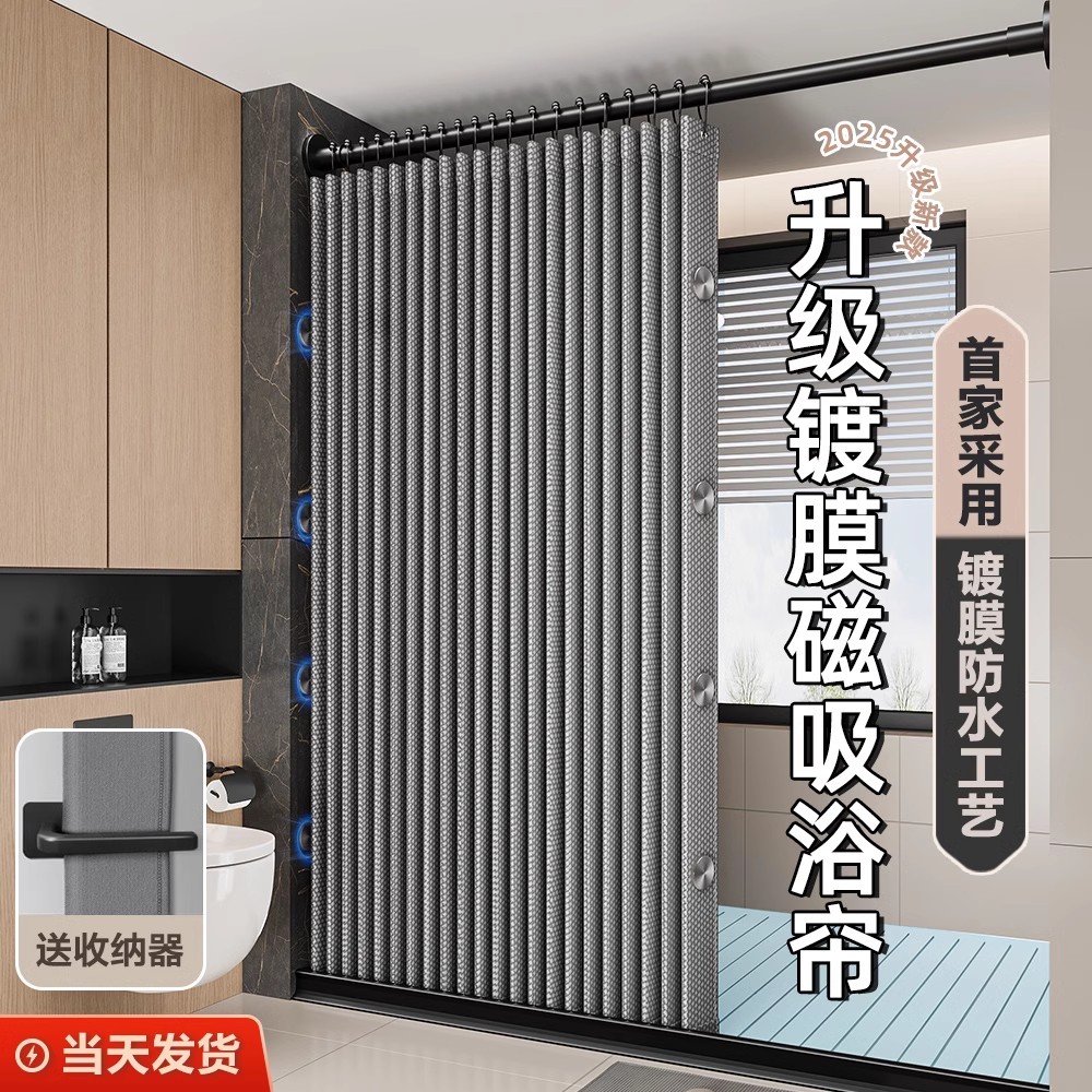 磁吸款简约新款折叠浴帘防水防霉浴帘浴室免打孔可遮挡浴室帘套装