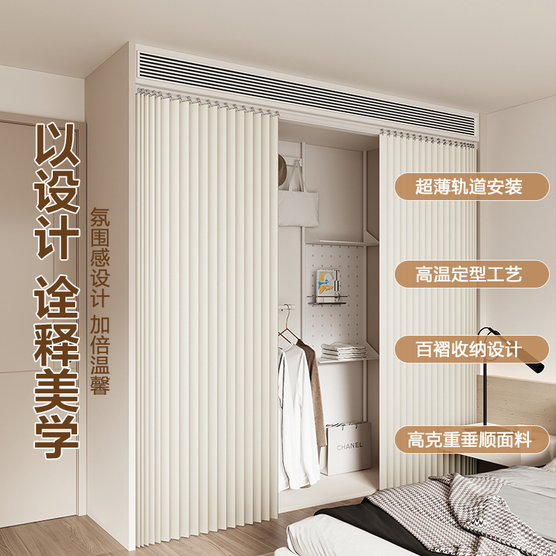 免打孔轨道衣柜仿亚麻防尘折叠帘大衣柜防尘高级衣帽间衣柜折叠帘