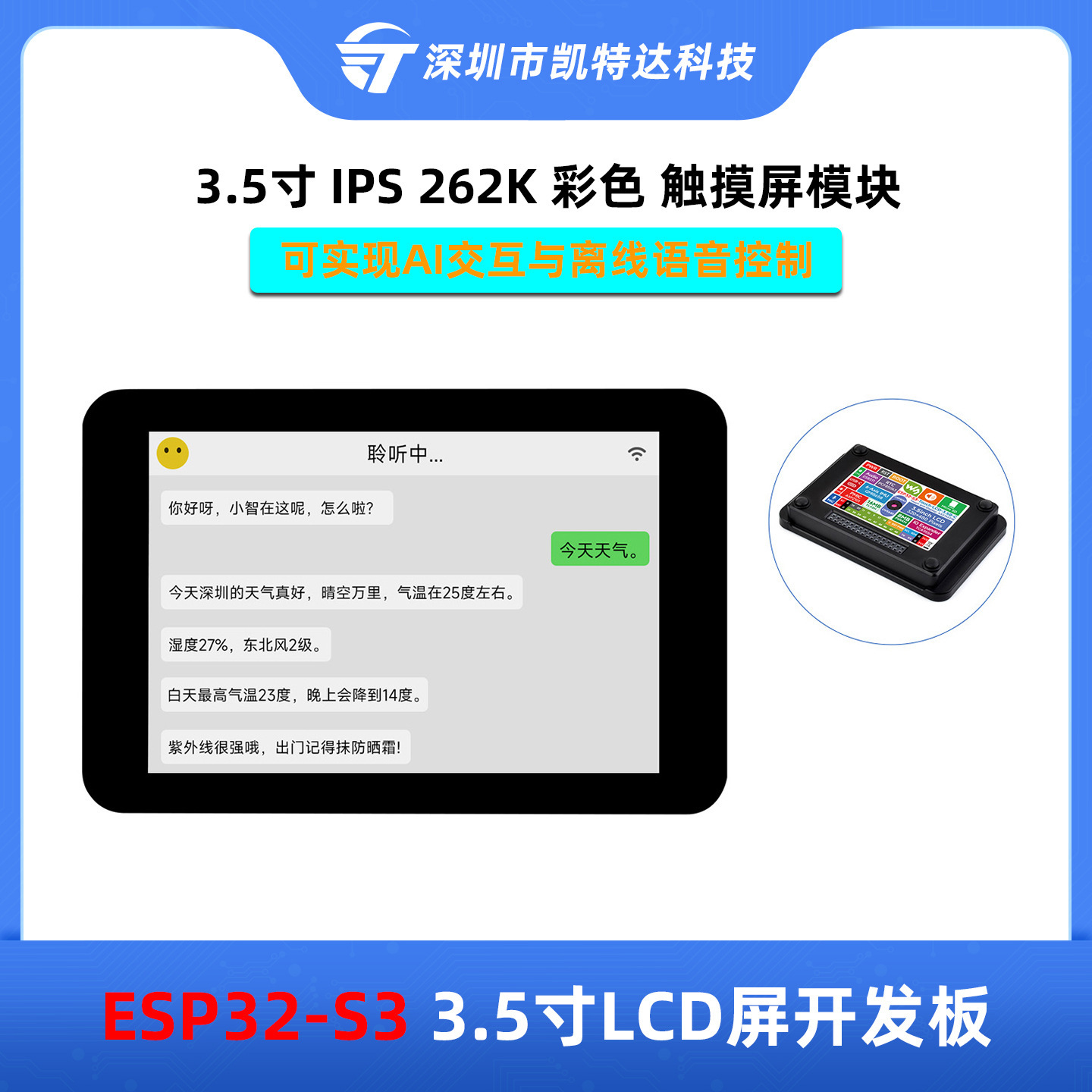 ESP32-S3 3.5寸IPS电容触摸屏含摄像头开发板支持小智AI DeepSeek