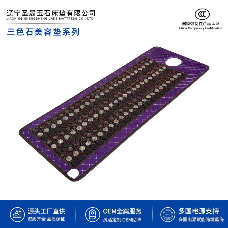 岫岩三色石美容垫定制锗玉砭石远红外线加热美容垫理疗汗蒸垫厂家