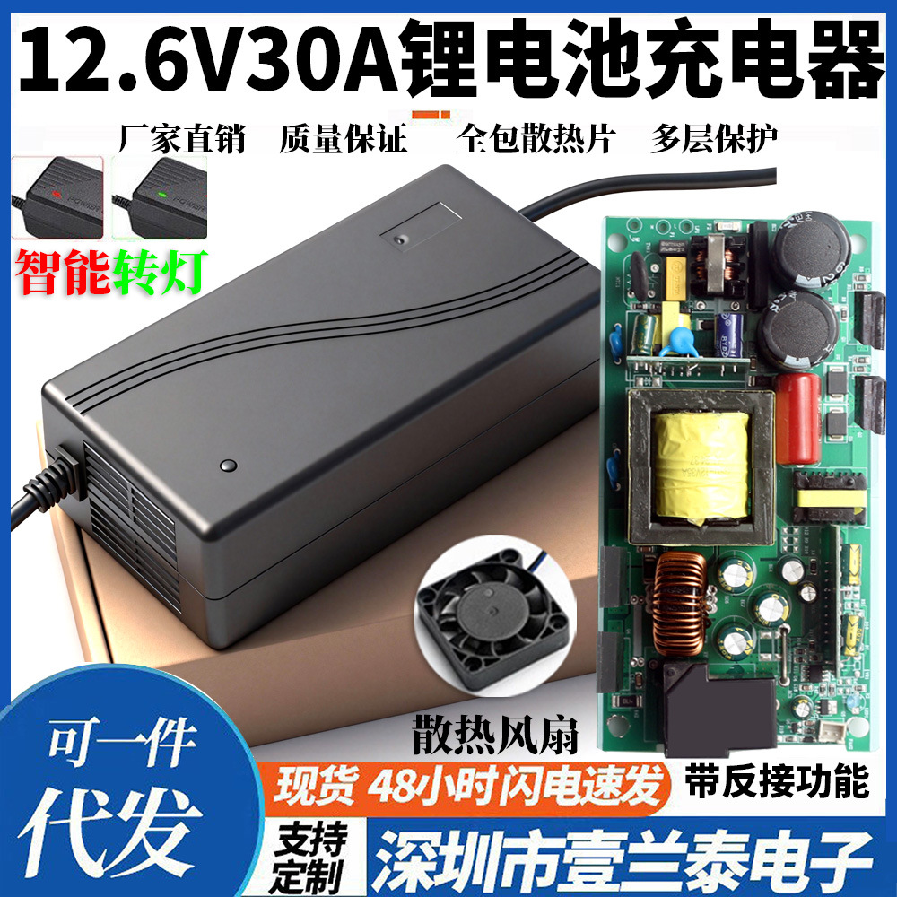 12.6V30A锂电池充电器 14.6V30A4串磷酸铁锂电池充电器智能转灯