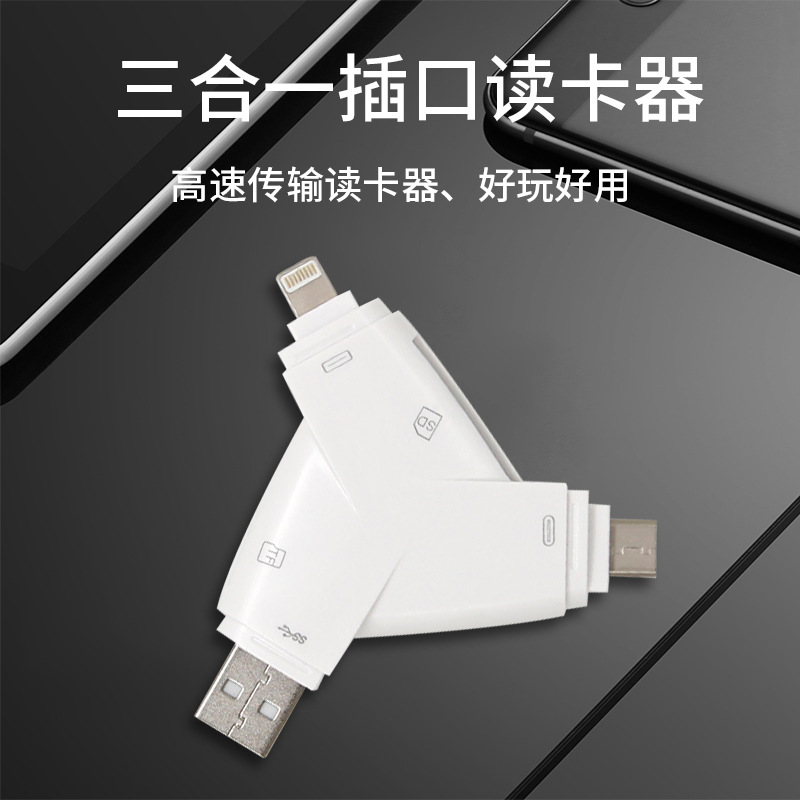 适用于苹果TF读卡器支持电脑安卓三合一OTGTF高速传输存储卡