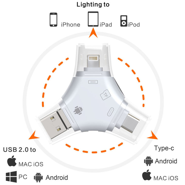 适用苹果读卡器otg四合一多功能读卡器内存卡外贸高速手机读卡器