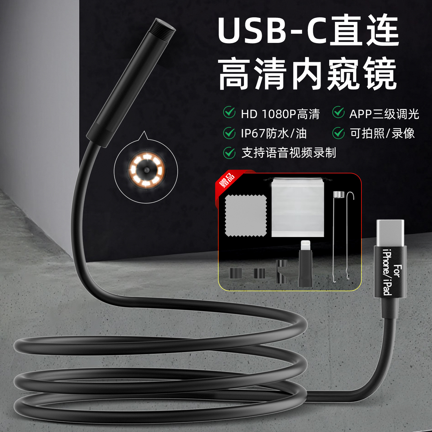 二合一手机工业内窥镜高清TypeC安卓可视窥视镜苹果IOS防水内窥镜