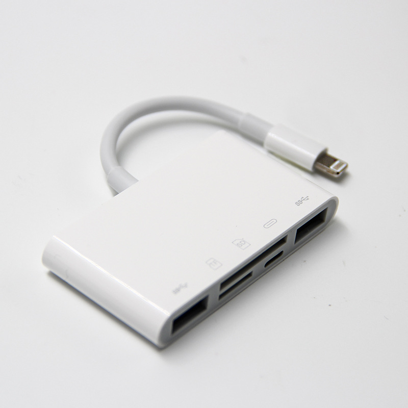 适用于苹果手机五合一多功能转接头双OTG/SD/TF/充电鼠标转接器