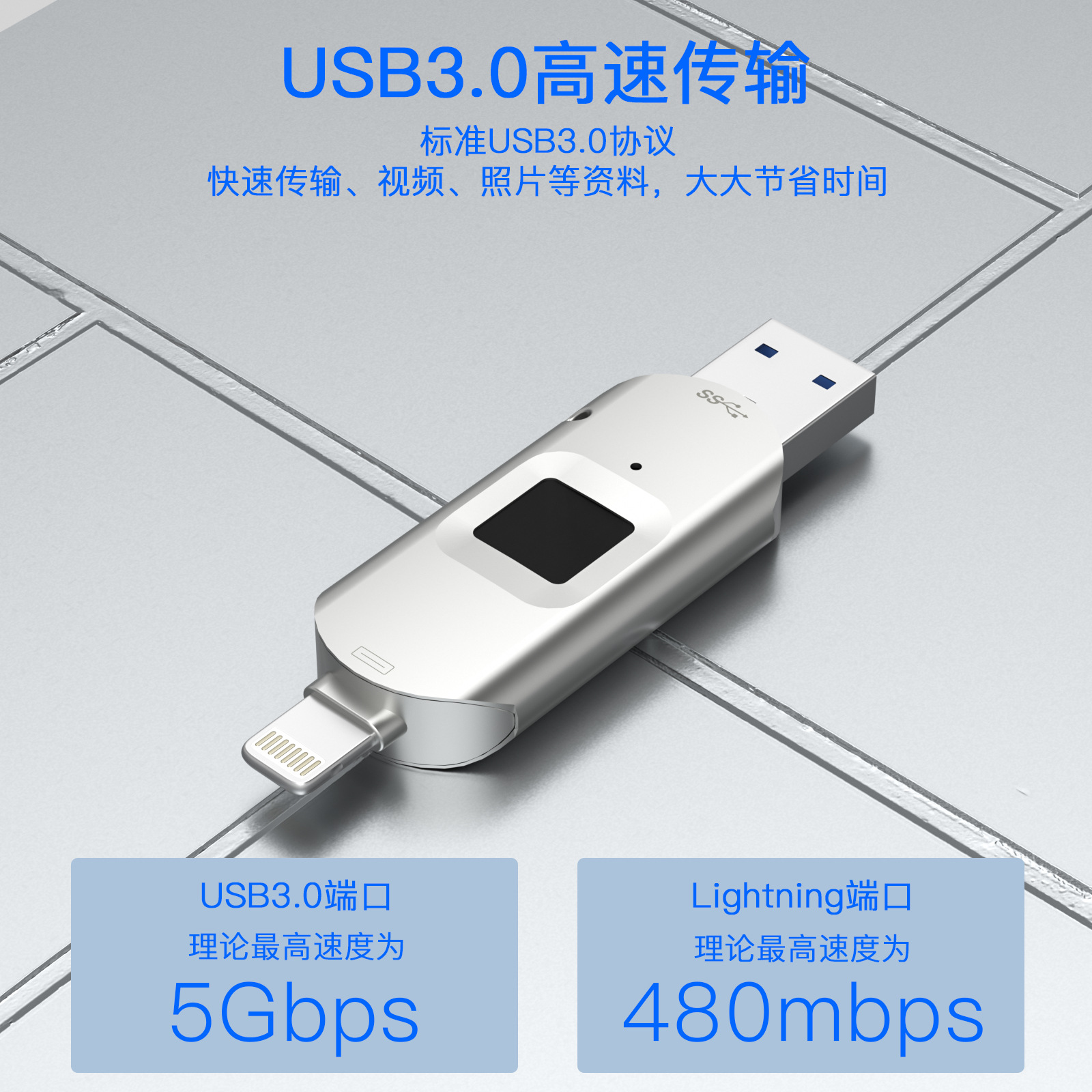 适用USB3.0高速苹果指纹加密U盘支持电脑二合一苹果加密U盘
