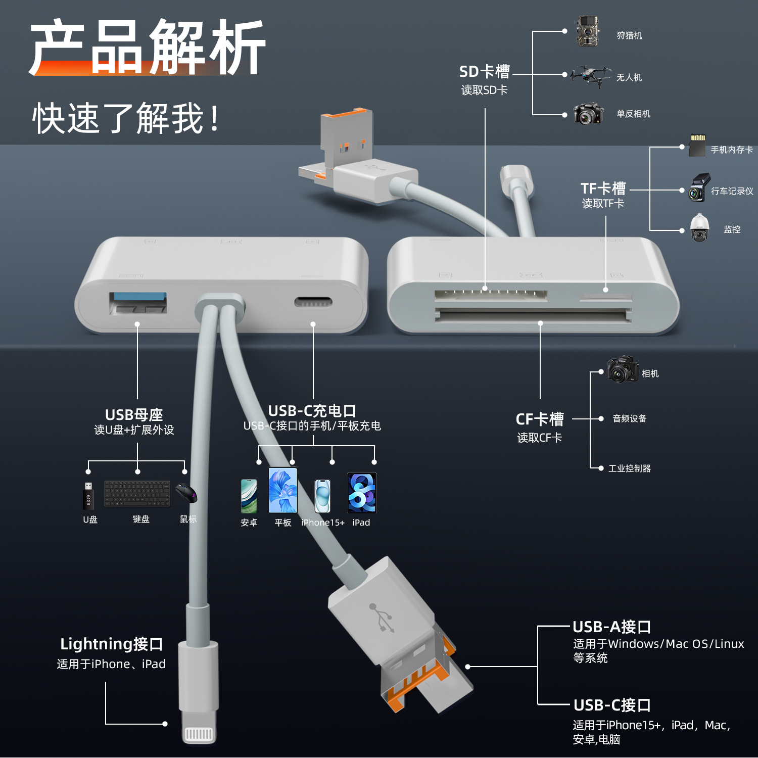 适用读卡器多合一苹果安卓type-c华为手机电脑高速SDTF卡高速传输