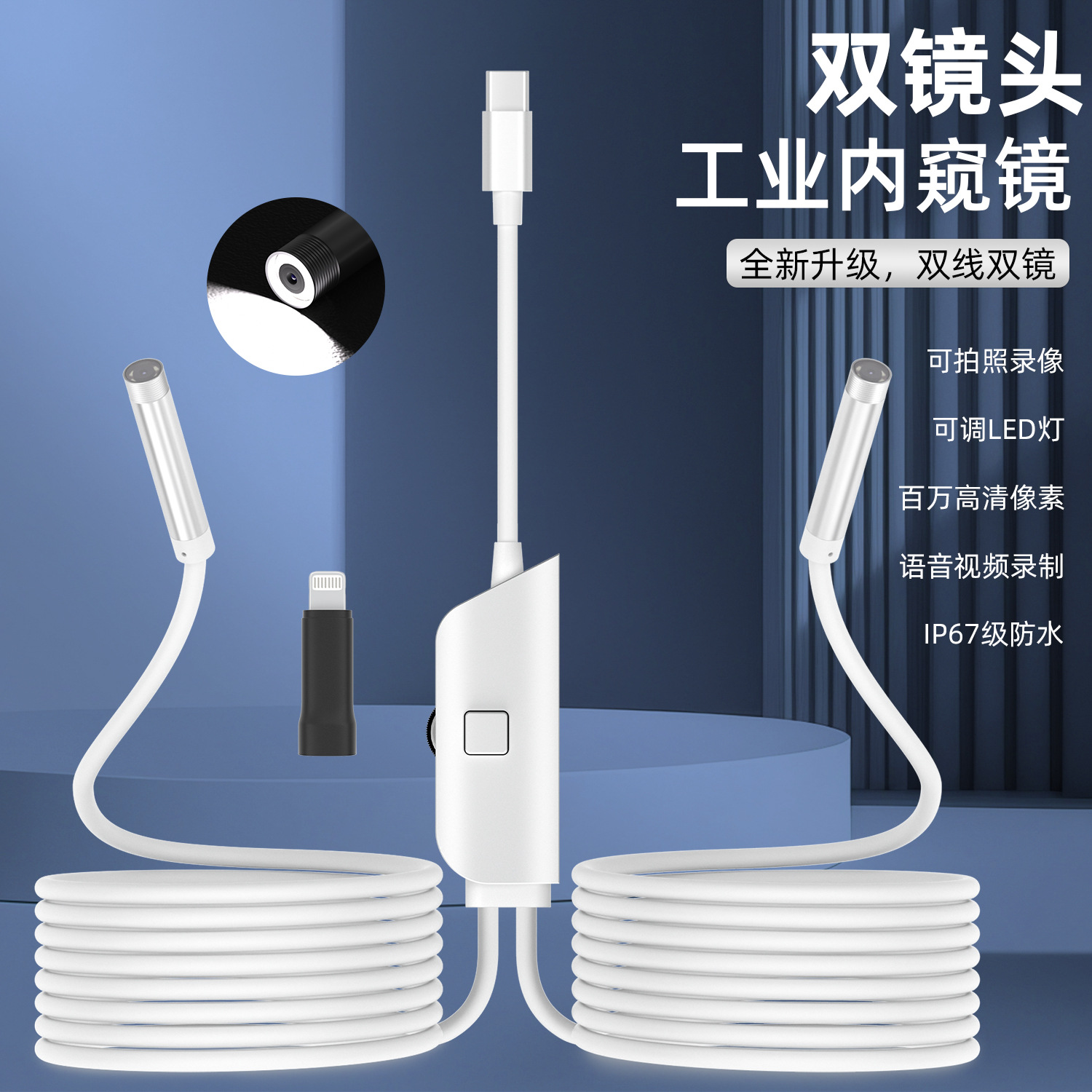 新品苹果安卓手机电脑通用双摄像头内窥镜百万高清像素工业内窥镜