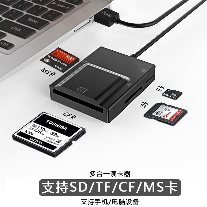 USB3.0高速读卡器四合一相机存储卡套件支持TF/SD/MS/M2/CF转换器