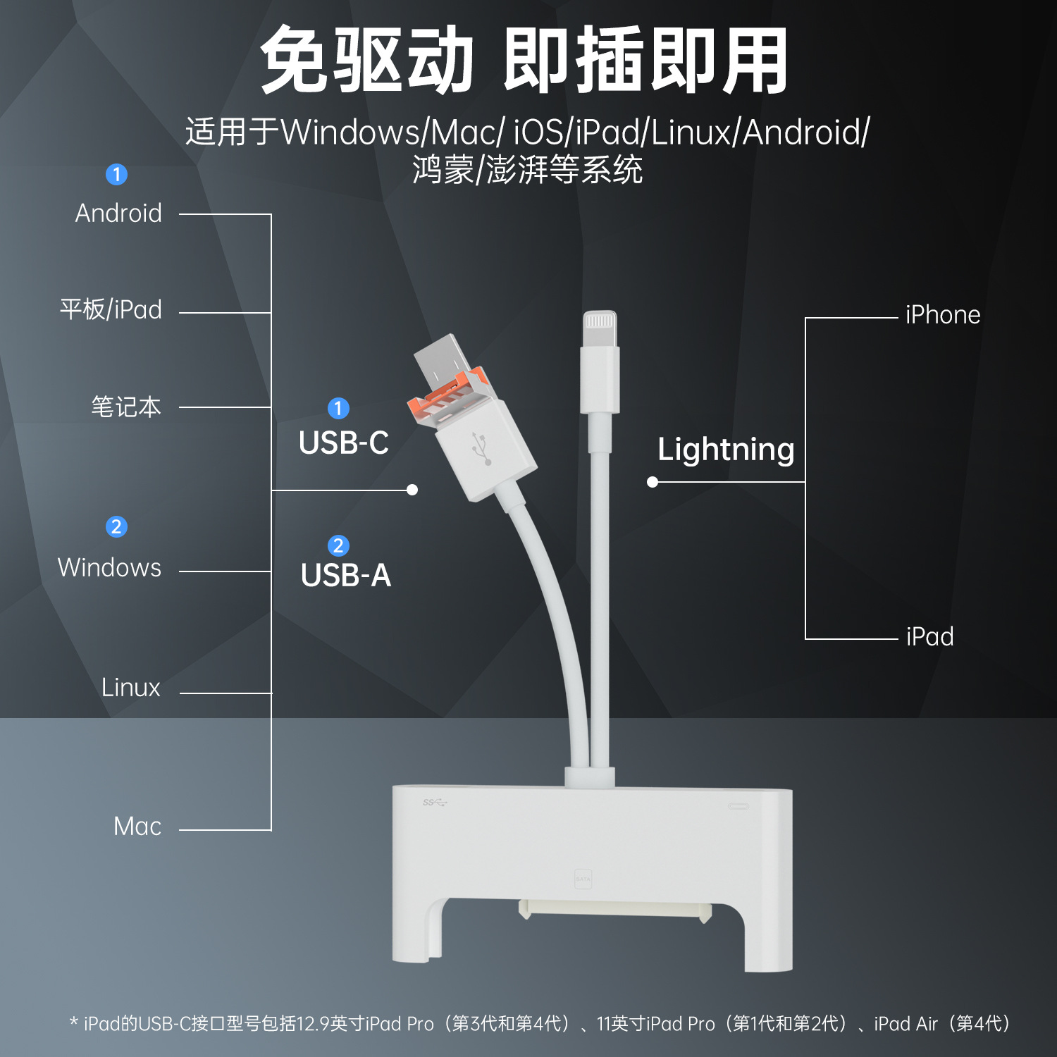 适用于苹果手机OTG转接线支持固态硬盘U盘鼠标键盘设备OTG扩展
