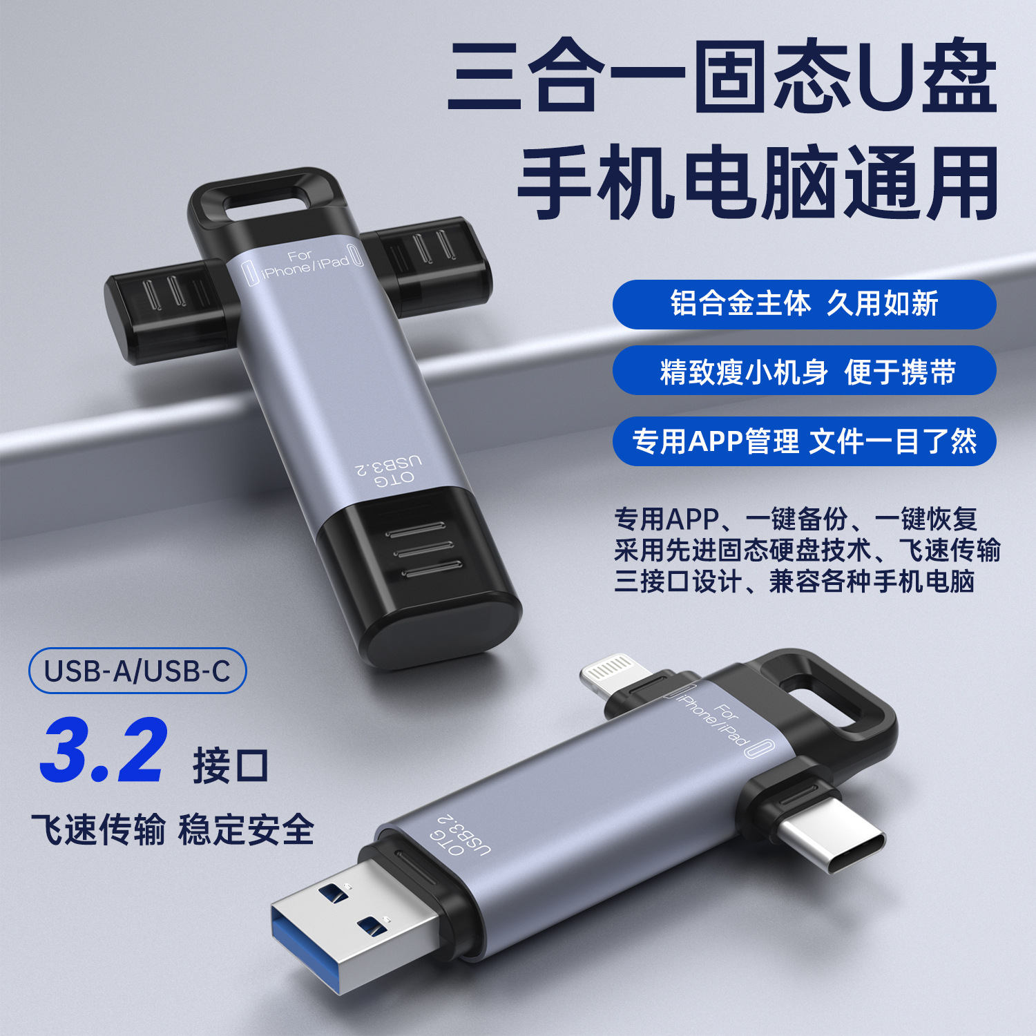 三合一固态U盘USB3.2高速传输速度适用于苹果手机安卓电脑