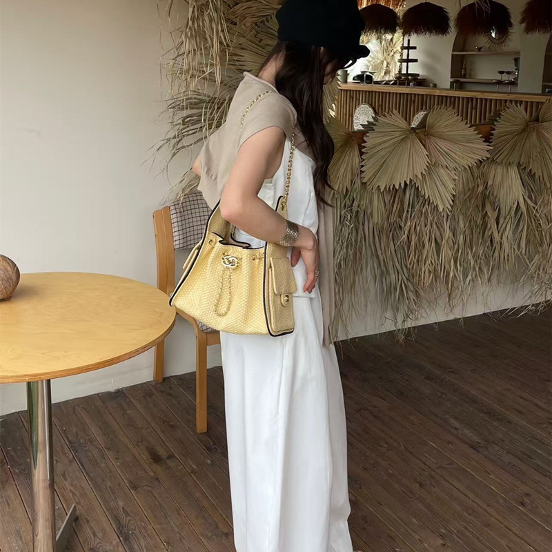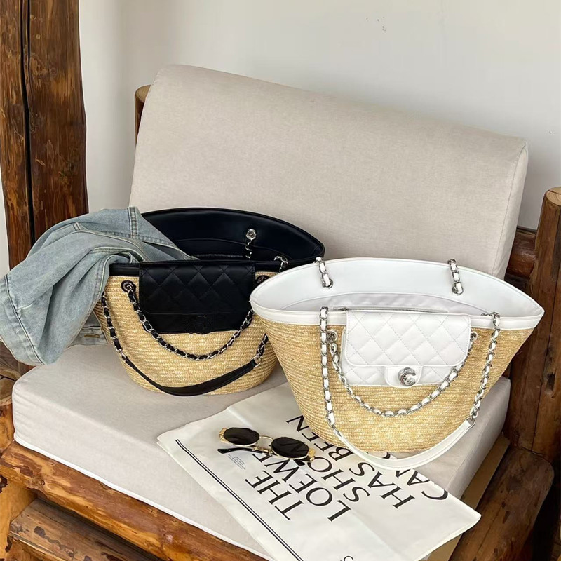 2026春夏新款大容量菜篮子草编包百搭菱格链条沙滩包单肩腋下女包