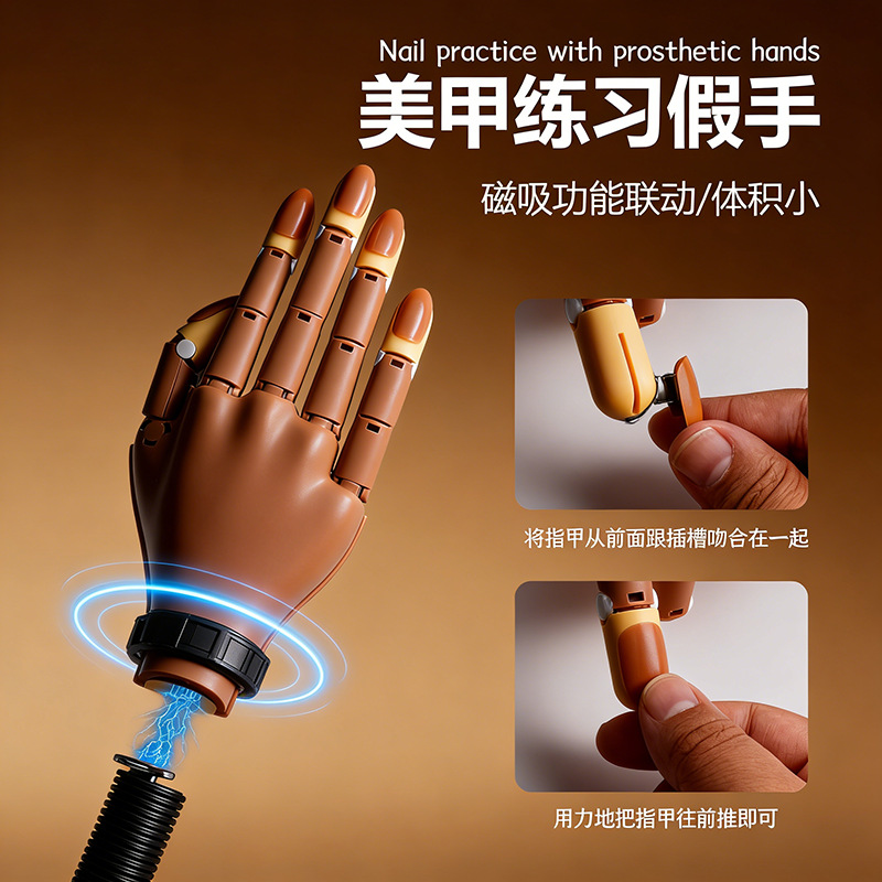 跨境新款美甲美甲磁吸练习假手模型仿真手机械手指甲片关节手支架