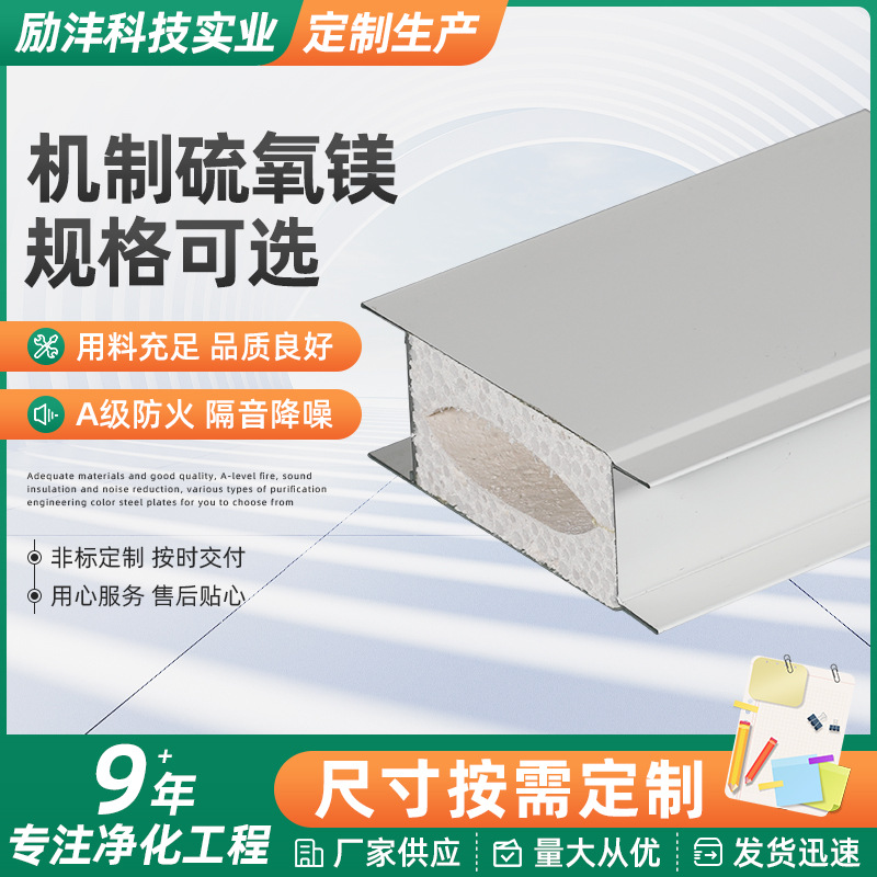 硫氧镁防火板无尘车间吊顶净化板隔墙板隔热板夹芯彩钢板工厂