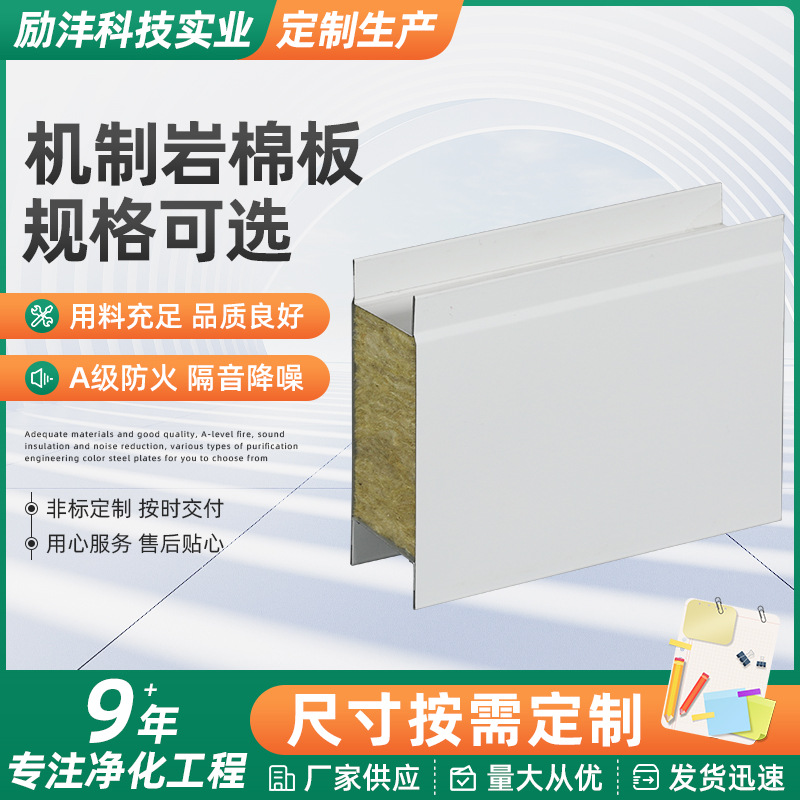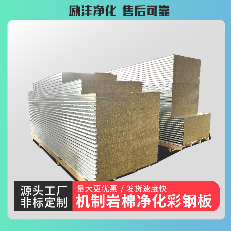 岩棉夹芯彩钢板净化车间外墙保温隔热防火吸音降噪机制岩棉净化板