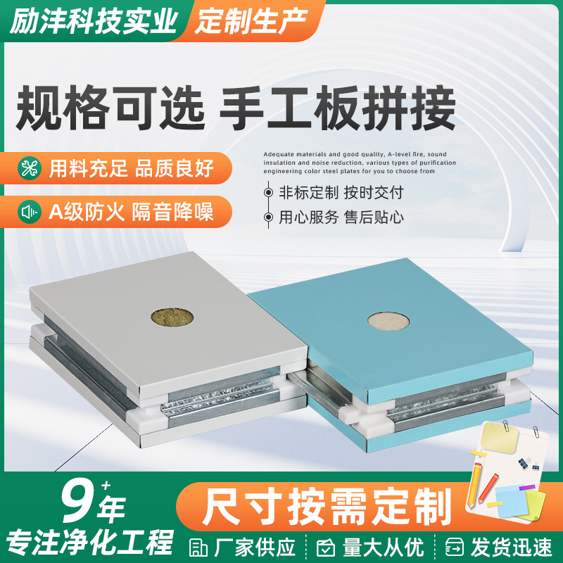 无尘车间净化板岩棉彩钢板隔热吊顶隔墙洁净夹心防火隔断板材