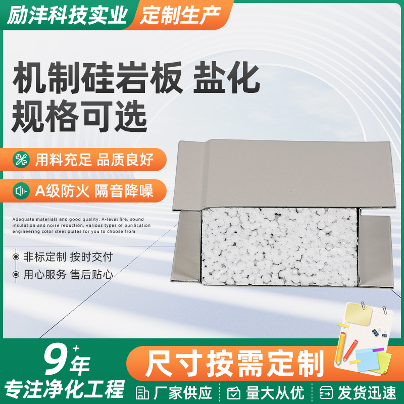 岩棉净化板洁净车间彩钢板隔热吊顶隔墙夹心防火板材源头工厂